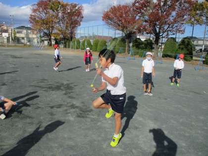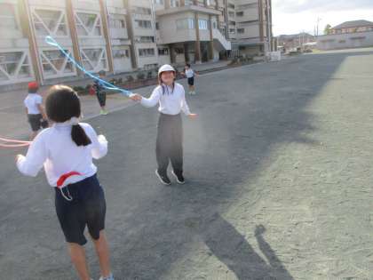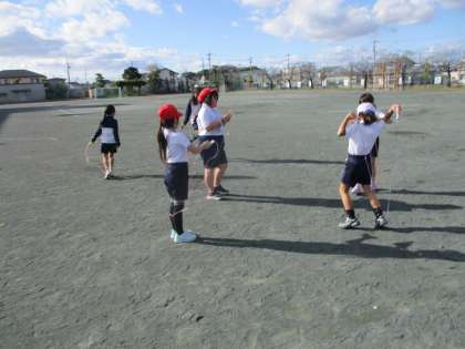 今日の体育は、寒い風が強めに吹く中で行いました。寒い中での体育では、運動量を上げて、血液の循環を高めることだと思います。前半は、「しっぽとり」「なわとび」「鉄棒」で、後半は「走り幅跳び」「ドッジボール」を行いました。特にのメインは、「なわとび」でした。6月から、ほとんど毎回行ってきた結果、「二重とび」「スピードかけあし跳び」「サイドクロスとび」などができる子が増えてきました。