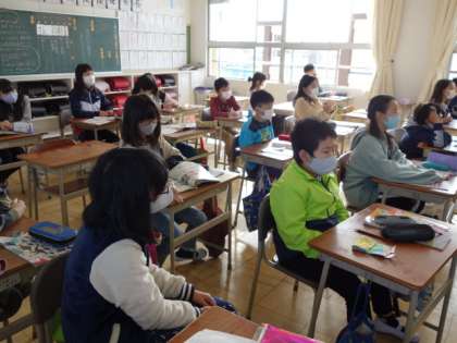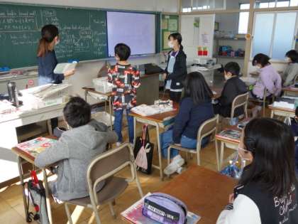 身近な人の紹介カードを見ながら、前に出て会話を行っていました。