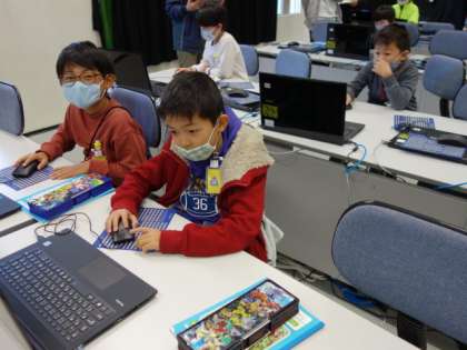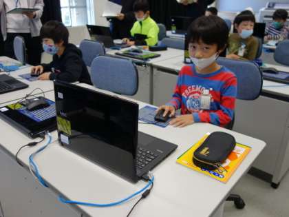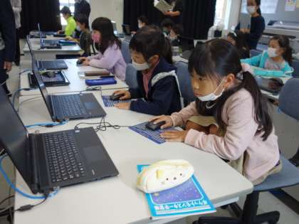 4の段が覚えられる工夫をしたゲームを、パソコンを使って楽しく作っていました。