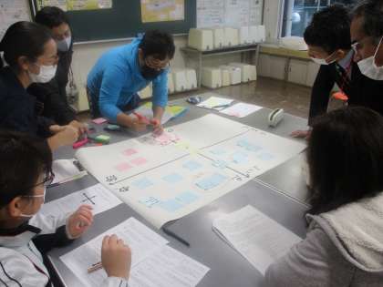 授業後に研究協議会を開き、授業について様々な視点から話し合いがされました。今日学んだことを、今後の授業につなげていくよう職員一同研究を進めていきたいと思います。