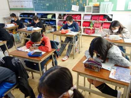 腕の骨のつくりを、自分の腕を触りながら考えて」いました。