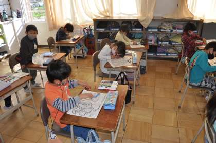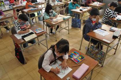 毎週水曜日に行われる漢字計算タイムでは、国語・算数の基礎的な力を伸ばすためにプリント学習に取り組んでいます。