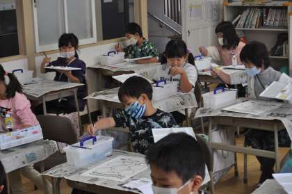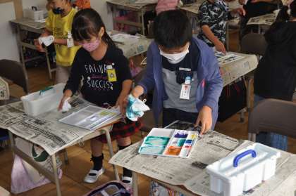 今日は図工で水彩絵の具を使いました。
