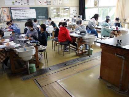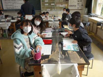 アンモニア水、塩酸、砂糖水、食塩水の性質をリトマス紙で調べていました。
