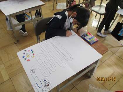 2年生の図工では、自分達で考えたオリジナルのすごろくを作っています。自分なりのストーリーをすごろくに表していますので、完成して、友達と遊ぶのが今から楽しみです。