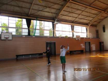 今日は、展覧会後の初めてのふれあい体育がありました。タグ鬼ごっこやラグビーボールのキャッチやパス練習などを行いました。久しぶりの体育で、子どもたちは楽しそうに活動していました。