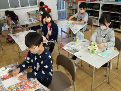 使って楽しい気持ちになるように、外側に模様や飾りをつけていました。