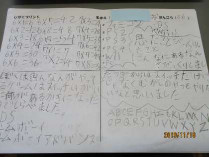 これからも、自らテーマを決めて、自ら学習に取り組む習慣がつくよう、自主学習の宿題を出していきますので、ご協力よろしくお願いします。