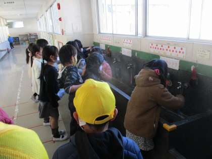 休み時間の後は、必ず手洗を入念に行っています。石けんを使って約30秒間、水の冷たさも関係なく指先から手首までしっかり洗っています。習慣というのは本当に素晴らしいと思います。