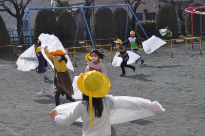 1年生 冬を感じる遊びをしました。(1/26) 公開日 2021/01/26 更新日 2021/01/26 1年生の部屋 生活科の授業で「風」を集めました。 子どもたちはビニール袋をいっぱいにしようと走り回りましたが、最初はうまくいきません。 袋の口を開けて、両手で広げること。腕を振って、一度に多くの「風」」を入れることに気が付き、楽しそうに取り組みました。 その後は、影ふみをして楽しみました。
