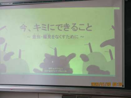 愛知県でも緊急事態宣言が出ている今、保健委員会から、感染予防で個人ができることや、不安から来る差別等について発表がありました。