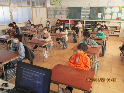 発表の後、1組では、手の洗い方についてもう一度確認しました。水が冷たい季節で、洗うのをとばしがちな、手の甲や、指の間、手首まで洗おうと約束をしました。