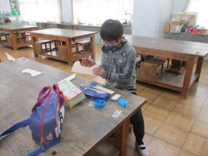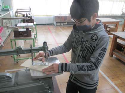 ふれあい・テープカッター作り(2/10) 公開日 2021/02/10 更新日 2021/02/10 ふれあいの部屋 図工の時間に、テープカッター作りをしました。今日は、電動のこぎりでテープカッターの横の部分を切りました。そのあと、やすりで切ったところを削りました。