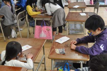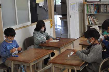 みんなで作った封筒にアサガオの種を入れました。