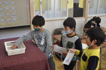 1年生 アサガオの種を分けました。(2/12)