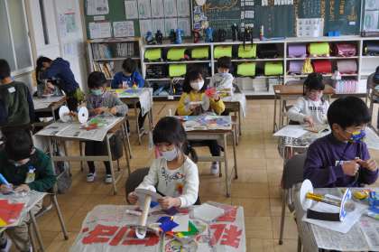 1年生 ころころ転がるかな?(2/12) 公開日 2021/02/12 更新日 2021/02/12 1年生の部屋 図工で作っている「ころころころりん」では、子どもたちが思い思いの飾りを作っています。回ってもきれいな飾りにしようとがんばりました。