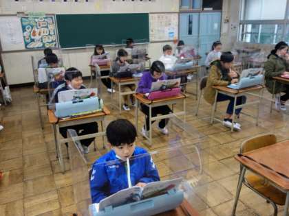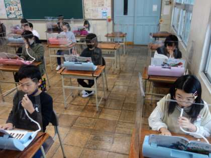 ルパン三世のテーマ曲を、先生のピアノに合わせて、けん盤ハーモニカで演奏していました。