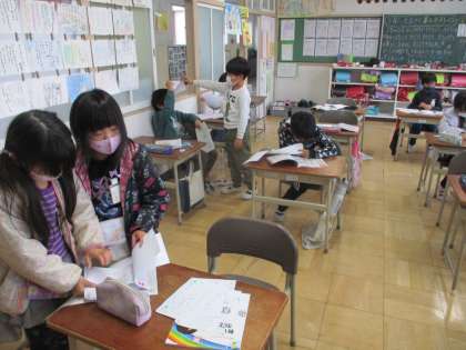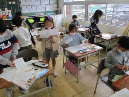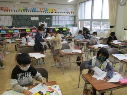 生活科「あしたへのジャンプ」の単元で、これまでにお世話になった家族や先生・友達などへ「ありがとうカード」を何枚も書きました。今日は、そのカードの交換会とお返しの「ありがとうカード」を書いて渡しました。感謝のお手紙をもらうと本当にうれしいものです。家族への「ありがとうカード」は、自宅でお渡しする予定です。