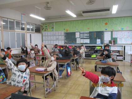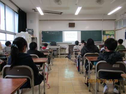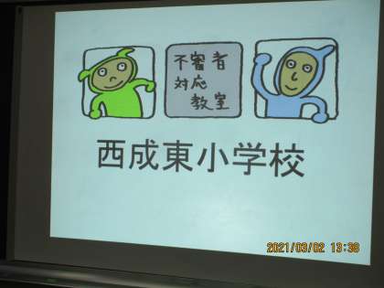 本日、1組では、資料を使いながら、不審者対応について学びました。学校にいる場合や、屋外での場合、家に一人でいるときなど、様々な状況での対応方法をクイズを交えて学びました。子ども達は楽しく、しかし真剣に不審者対応について学ぶことができました。ご家庭でも、知らない人から声をかけられたときの対応など、もう一度確認して頂けると助かります。