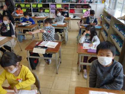 50円を持ってお菓子を買いに行ったことを想定した問題を解いていました。