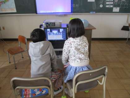 卒業生を送る会は、ZOOMを使って行いました。在校生は、自分たちの発表が終わると教室に戻り、その様子をパソコンで視聴していました。