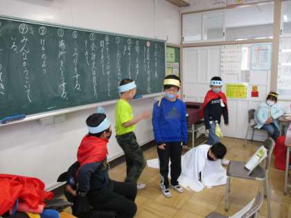 今日もスーホの白い馬の「音読劇発表会」を行いました。今日は、衣裳や小道具を使ってかなり劇に近い形で行いました。練習の成果もありますが、小道具をつける表現がかなりリアルになってきます。あと2時間が楽しみです。