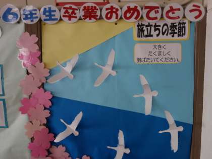 図書館には、6年生へのメッセージが掲示してあります。 卒業式が日に日に近づいていますね・・・。