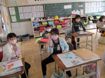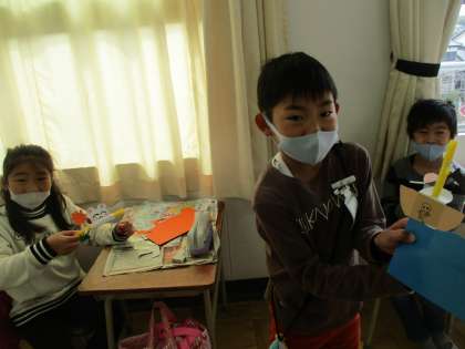 今日で、図工「ストローでこんにちは」の作品が出来上がりました。最近の図工では絵画よりも工作が多いです。それは造形が子どもにとって楽しく、造形の方がが芸術的センスを育てるからだと思います。「遊べる工作」「個性が表れる工作」「つくって楽しい工作」などです。今回は「つくって楽しく、遊べて楽しい工作」です。