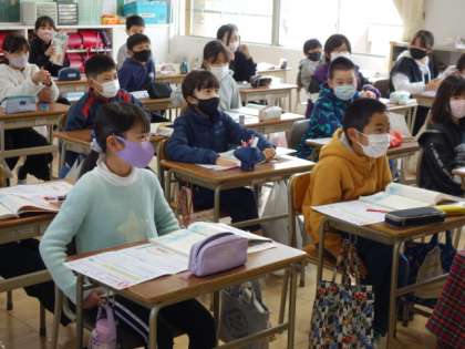 全員で音読をしながら、物語のなかで起きている出来事を読み取っていました。