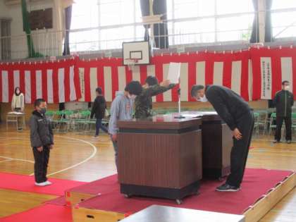 6年生は、卒業式の入退場や証書の受け取り方の練習をしました。証書受け取りの練習は初めてだったので、説明を受けながら取り組みました。