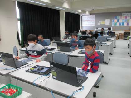 今日は、先週作成した動画作品の鑑賞会とインターネットでの検索の仕方を学習しました。小学校では、「ヤフーキッズ」というサイトから学習や調べものなどの検索ができます。2年生ではまだローマ字を習っていませんので、ローマ字とひらがなの変換表を使って、いろいろなサイトを開いてみました。