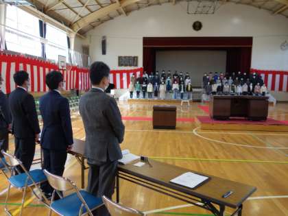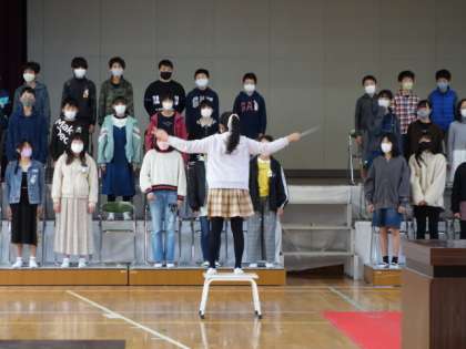 はじめに修了式・卒業記念品授与式を行いました。PTA記念品授与では、PTA会長から「夢や目標に向かってチャレンジする人であってほしい」という話があり、子どもたちは真剣に耳を傾けていました。