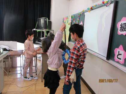 ふれあい学級では、卒業進級を祝う会を行いました。六年生へのプレゼントやそれぞれの活動の映像の鑑賞などを行いました。みんなで楽しく活動できました。
