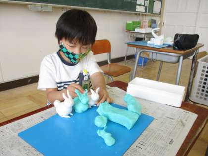 ふれあい・粘土で動物を作ろう(6/21) 公開日 2021/06/21 更新日 2021/06/21 ふれあいの部屋 1年生の図工は、粘土で動物を作りました。最初は、粘土が固く思った形になりませんでしたが、徐々に柔らかくなって動物を作ることができました。