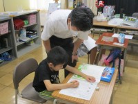 ふれあい・雨天の放課の過ごし方(7/5) 公開日 2021/07/06 更新日 2021/07/06 ふれあいの部屋 なかよしタイムは、雨が降ってしまって外で遊べないので、1年生はふれあい3組で4年生の子とブロックで遊びました。