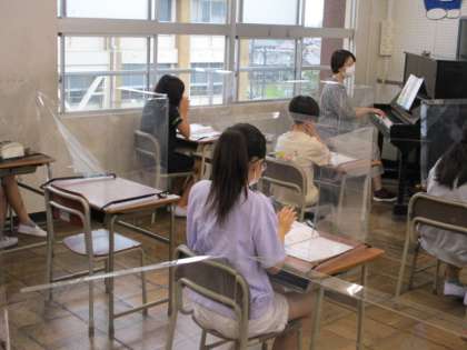 感染予防のため近い距離で歌うことがないように、男子・女子が交互に歌っています。