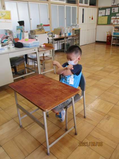 今日は、4年生が救助袋訓練を行いました。事前指導には、1年生も加わり、どのような姿勢で降りるかを練習しました。訓練は順調に終わりました。
