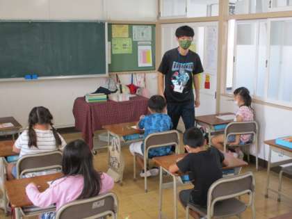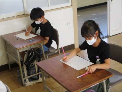 プリントを使って、漢字を学んでいます。わからないところは質問しながら、がんばっています。