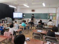 今日の図工は「土をかんじて」の勉強です。南運動場に出て、砂や土、ドングリや葉っぱをペットボトルに詰めて、色の組み合わせを楽しみました。グリーンサンドの緑色、土の茶色、ドングリの形などを組み合わせて、素敵なデザインを作り上げていました。