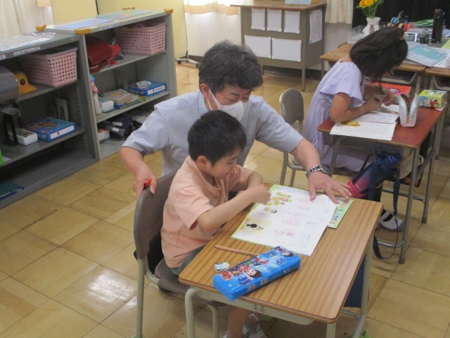 1組では、Chromebookを使ってタイピング練習をしたり、画面上で色塗りをしたりしました。2組では、ひらがなを覚えたり、ことばの意味を調べたりしました。