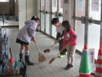 ペア学年で協力して清掃を行っています。上級生が掃除の仕方や道具の使い方などをやさ...