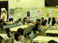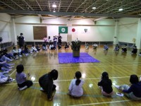 夕べの集いの時間になりました。実行委員の司会のもと、今日の活動で楽しかったことを...