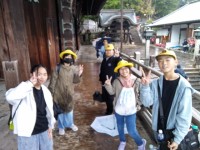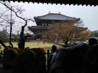 法隆寺に着きました。残念ながら、ポツポツと雨が…。