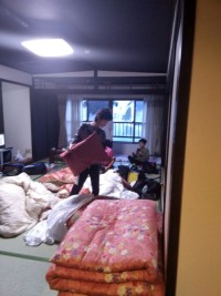 「おはよう!」のあいさつと共に、早速お布団を畳んで、出発の準備を始めた班も。部屋...