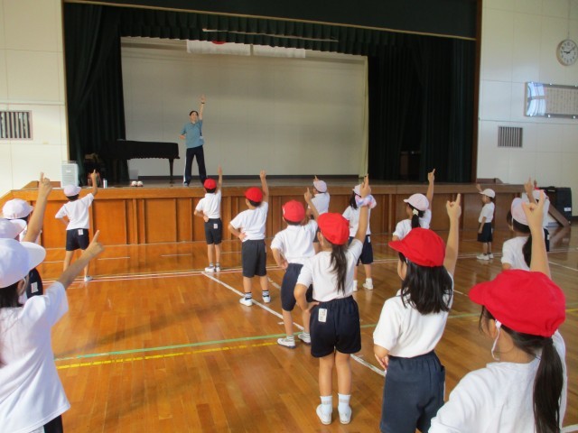 リズムに乗って、かっこいいダンスの練習を行いました。元気いっぱい体を動かしました。