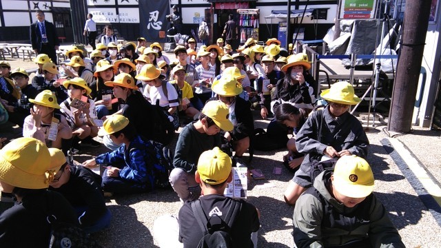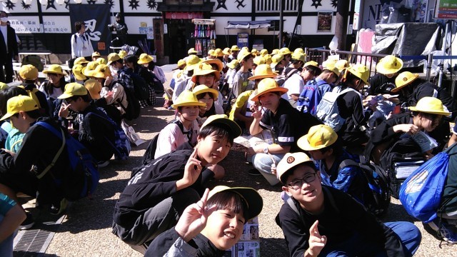 太秦映画村に到着です!これから、お弁当を食べて、班行動です!