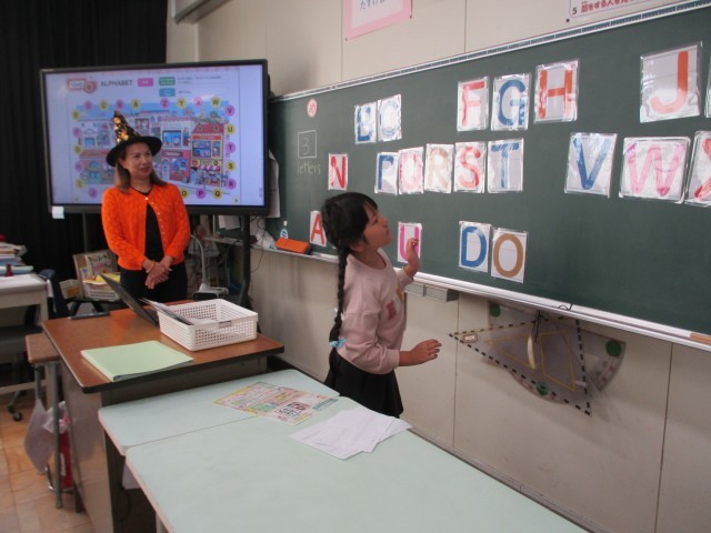 もうすぐハロウィン。先生はハロウィン仕様の出で立ちで登場!楽しく学習ができました。