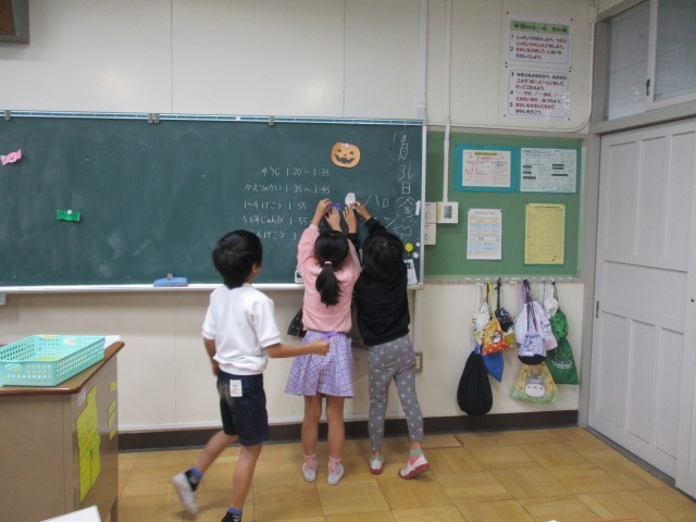 作品が完成した子から、自分たちで進んで黒板に貼り始めましtた! 上手にできましたね!!