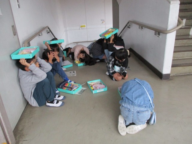 今日、シェイクアウト訓練がありました。地震を想定しての訓練でした。教室から図工室に移動する中で、階段でのことでした。各々、身を守る行動を考え動くことができました。いつ、どこで、どんな災害にあうかわかりません。どんなときにも、落ち着いた行動がとれるよう、訓練は大切ですね。