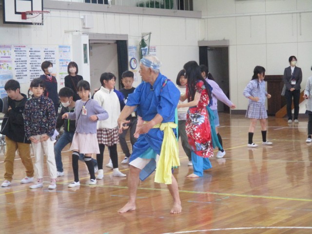今伊勢町宮後で古くから伝わっている芸能である住吉踊りの体験をしました。保存会の方たちに教えてもらいながら、手踊りに取り組みました。上手に楽しく踊ることができました。また、学芸員さんから、伝統芸能の紹介も聞くことができました。
